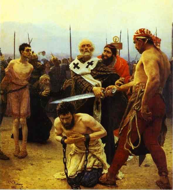During the persecution of the martyrs (303-311) Nicolas was imprisoned under Diocletian, Later he was one of the three hundred and eighteen Bishops summoned to attend the first great Church Council at Nicaea, where he is said to have disgraced himself, but given great glory to God, by striking the founder of the Arian heresy.