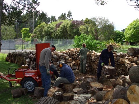 when we held our second and final log splitting working bee.Those featured are Tree Cocks, Polly Mason, Ron Tindall, James Cordes, Nigel Tucker, Scott Blackwell and Peter. Scott provided the team with some more of his marvelous fruit