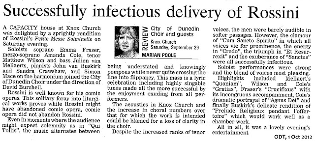 soloists, City of Dunedin Choir and Southern Sinfonia. Well done to all...